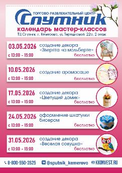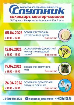 Мастер классы апреля в ТЦ "Спутник" Кемерово